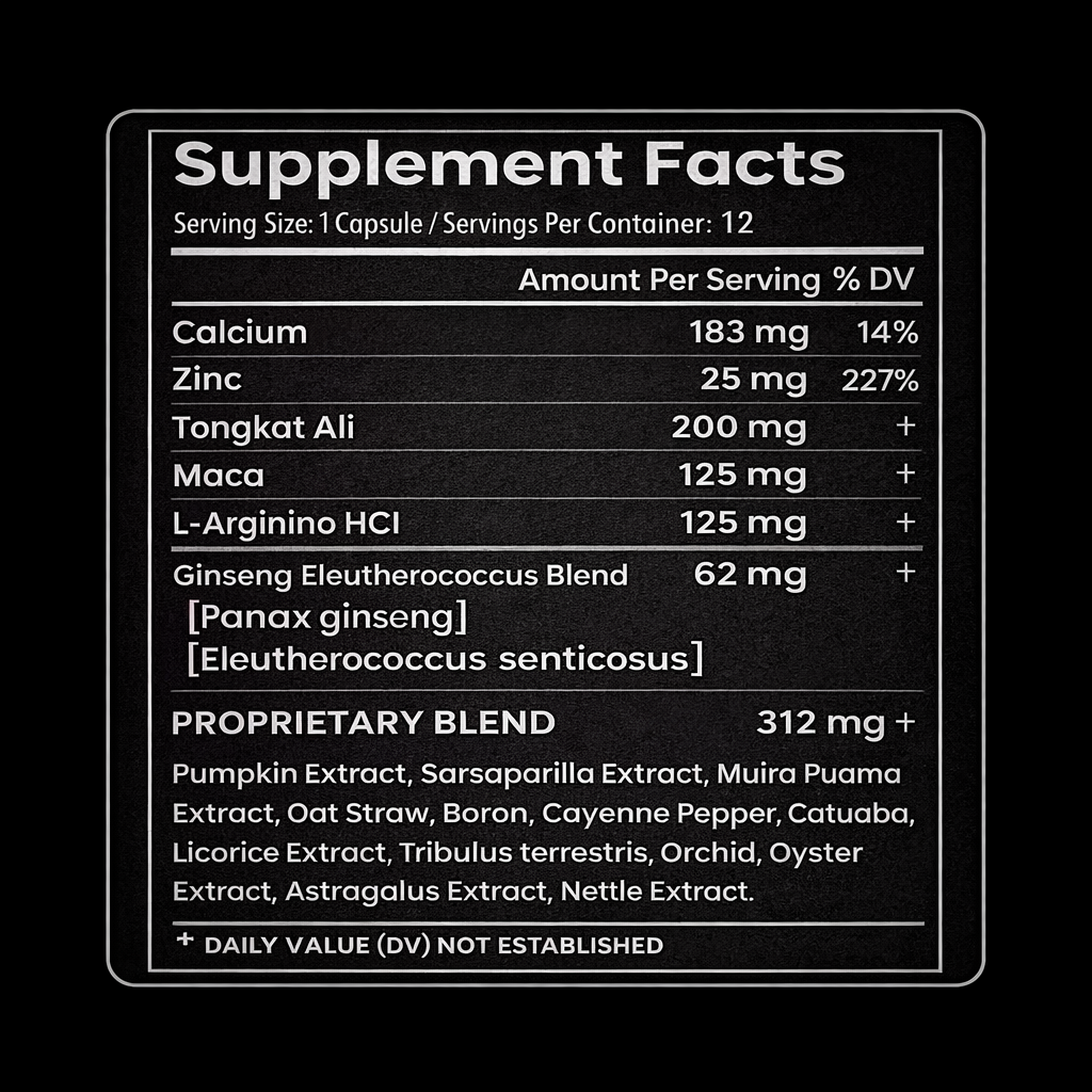 Este suplemento está formulado para mejorar el rendimiento sexual masculino mediante el apoyo a la circulación y la energía. Ingredientes como L-arginina, ginseng y maca ayudan a aumentar el flujo sanguíneo y potenciar la libido de forma natural. Su combinación está diseñada para ofrecer mayor resistencia, mejor desempeño y apoyo en la función eréctil.