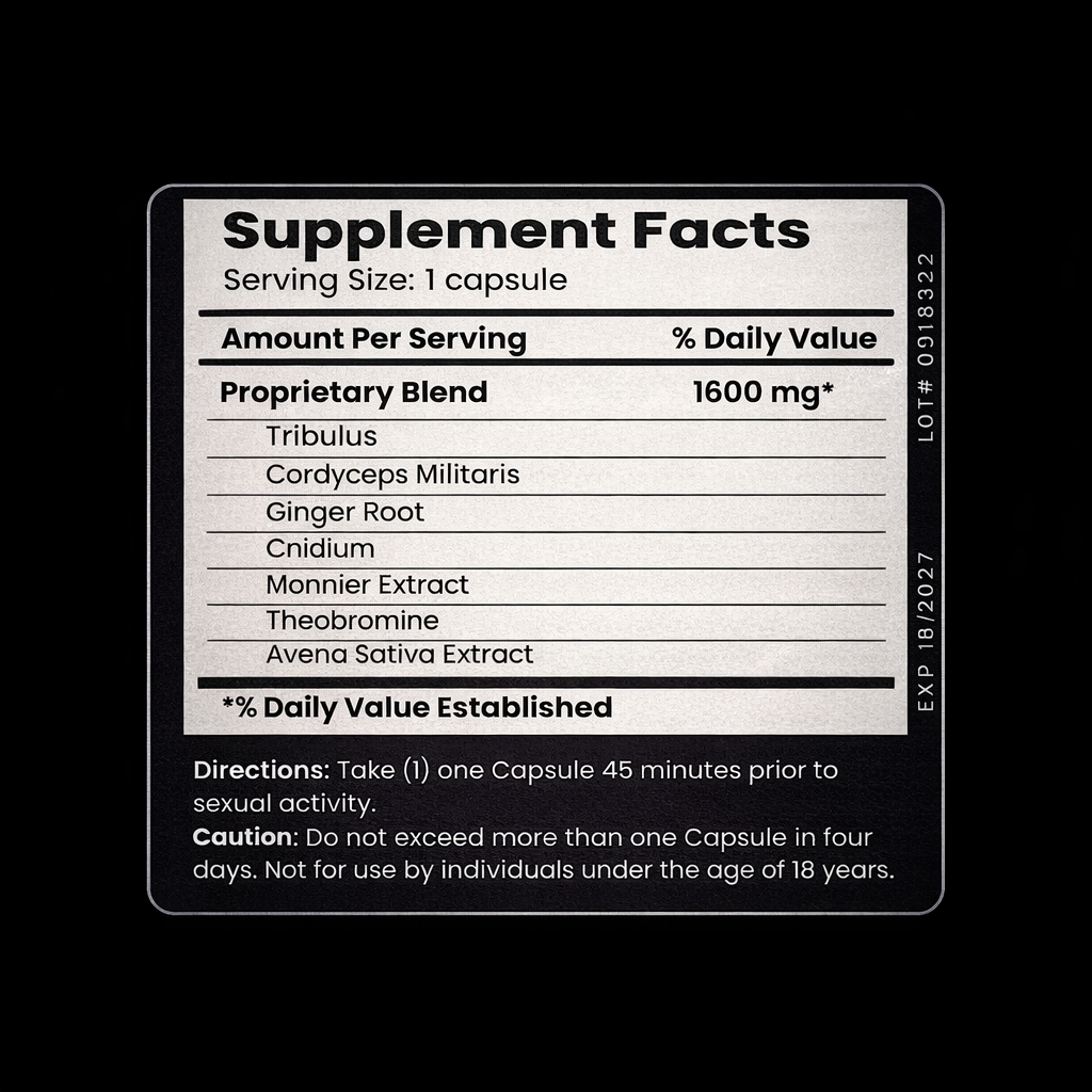 Este suplemento combina una potente mezcla herbal de aproximadamente 1600 mg diseñada para apoyar la energía, la resistencia y el rendimiento masculino. Ingredientes como Tribulus terrestris, Cordyceps y Rhodiola ayudan a mejorar la libido, reducir la fatiga y optimizar el rendimiento físico. Su fórmula de absorción rápida está pensada para ofrecer resultados efectivos en momentos clave.
